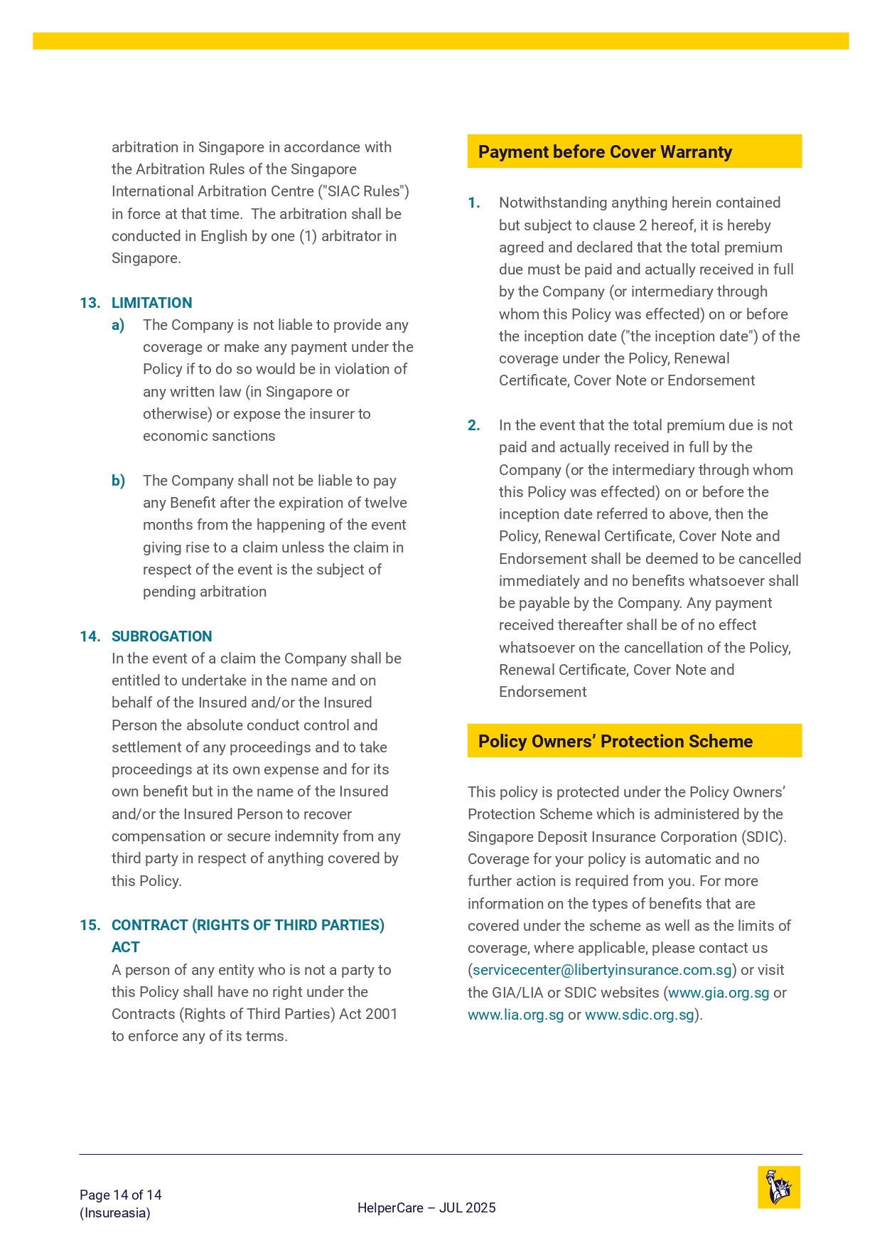 - Where any request is made upon the Insurer by MOM for payment of any sum pursuant to the Guarantee, (“such request”) the insurer shall at its absolute discretion be at liberty to contest or compromise or immediately pay upon such request and such request shall be sufficient authority to the insurer for making any payment thereon without requiring or obtaining any evidence or proof that the amount so claimed or requested is due and payable to MOM and without any notice or reference to or further authority from me /us notwithstanding that I/we may dispute the validity of any such claim or request.
